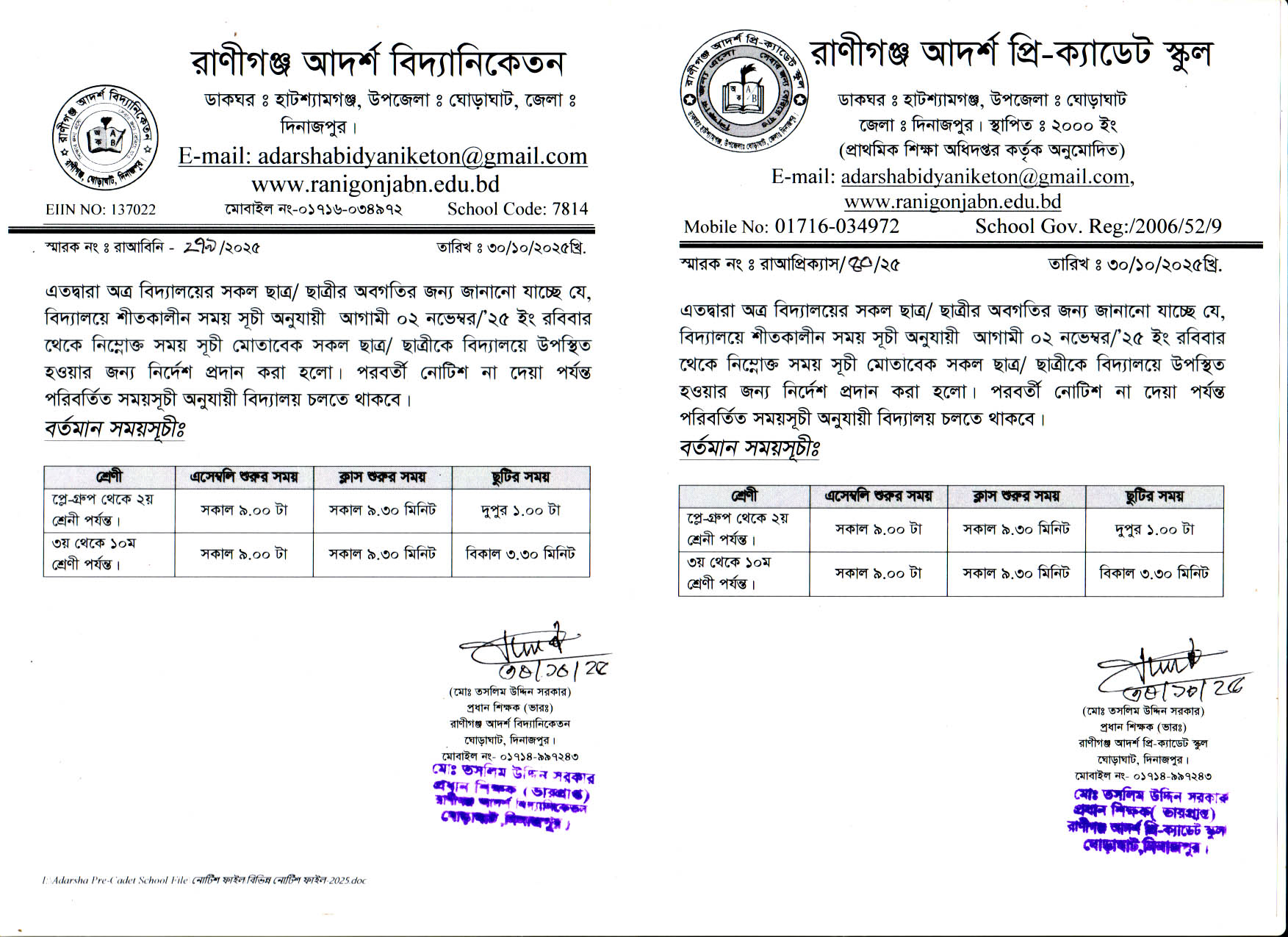 ’’শীতকালীন সময় সূচী পরিবর্তী নোটিশ ’’